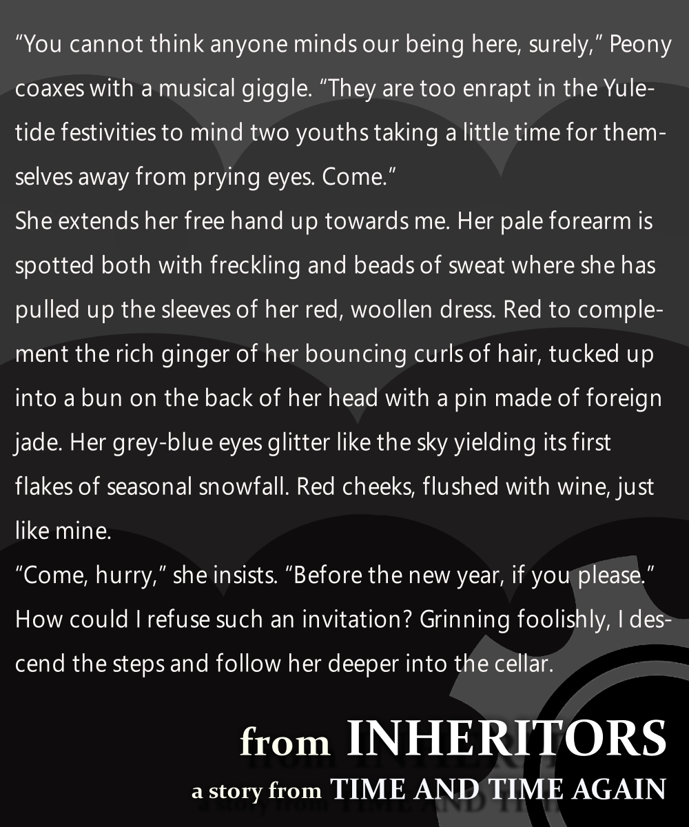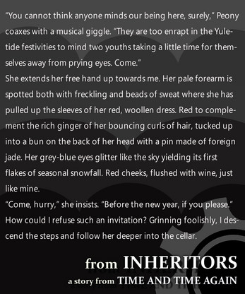 - Inheritors (fantasy, 10,600 words.) Two young sweethearts come together in the cellar of a tavern, not realising their love will shape the fate of their home.
