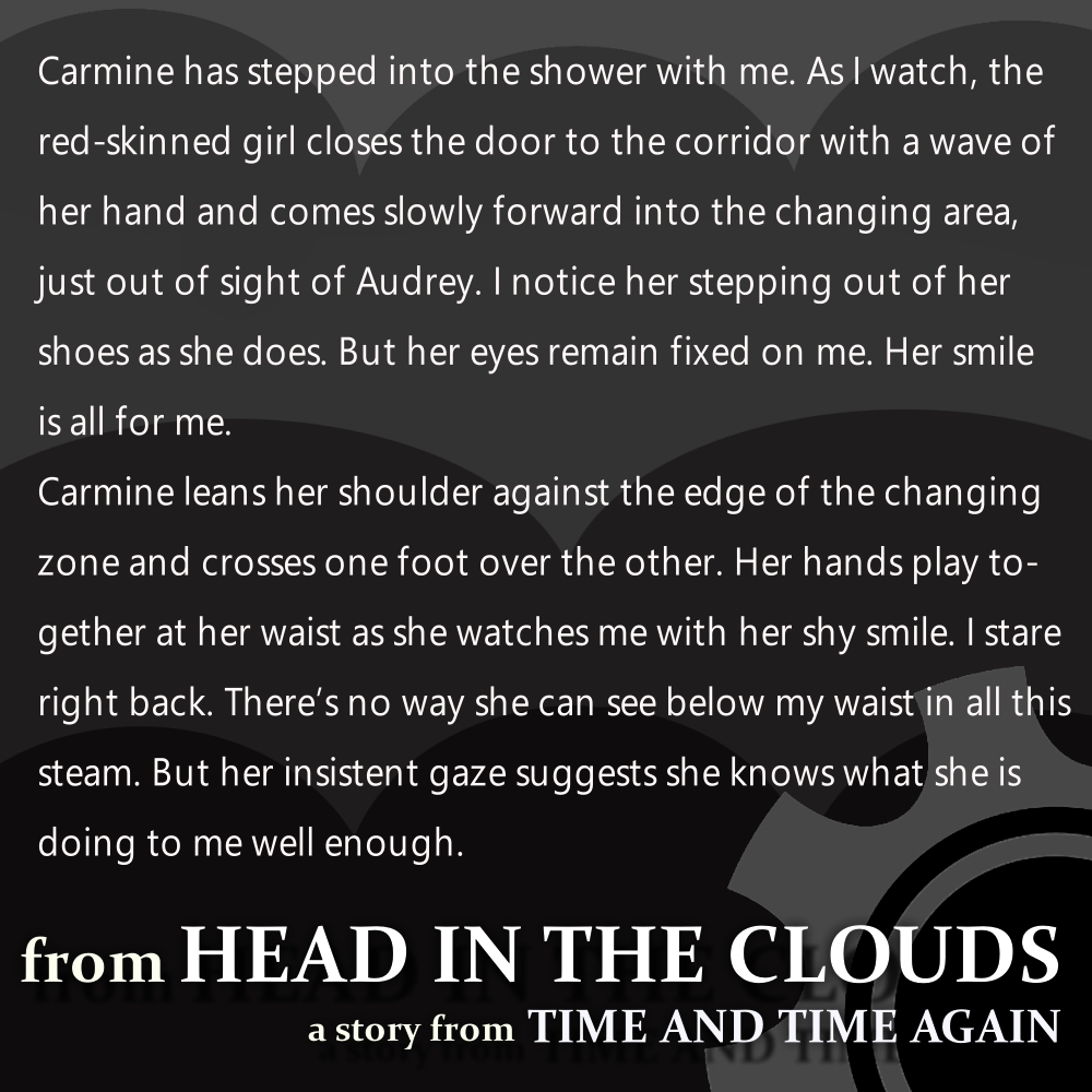 - Head in the Clouds (scifi, 14,400 words.) A married couple afraid they have lost their way take some time in an alien spa, where the help is all too eager to support them.